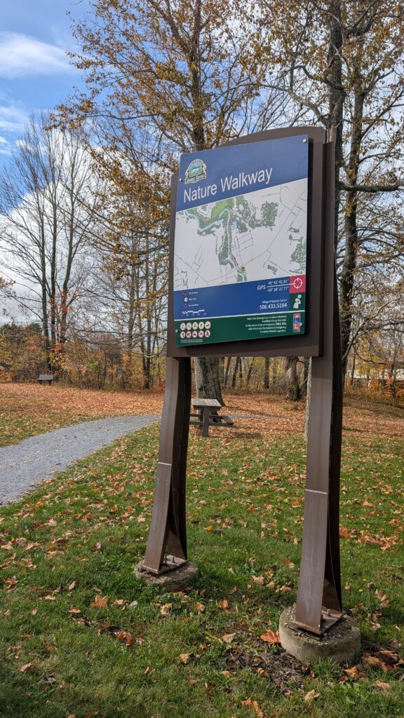 From Saint John, take Route 1 East toward Sussex and exit at Route 111 (Exit 195) toward Sussex Corner. Continue straight through the roundabout, then turn right onto Leonard Drive. The Sussex Nature Walkway trailhead is located behind the 8th Hussars Sports Centre (arena), where you’ll find plenty of parking.