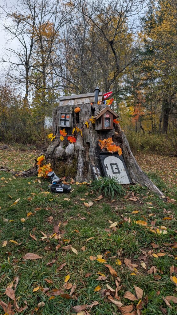 The walkway follows along Trout Creek, and though it’s late October and a bit too chilly for paw-dipping, I could see lots of spots where a dog could splash around on a warm summer day. Today, though, the big show was in the trees—brilliant yellows, fiery reds, and deep oranges forming a tunnel of color overhead. Every gust of wind sent leaves fluttering down like confetti, carpeting the path beneath my paws. Mom kept stopping to take photos, but I didn’t mind—it gave me more time to sniff the crunchy leaves.
